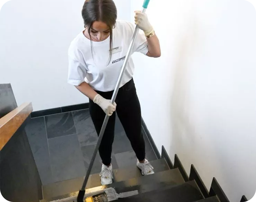 Der erste Eindruck zählt. Wir sorgen für ein sauberes und gepflegtes Treppenhaus in Ihren Immobilien und Gewerbeobjekten.